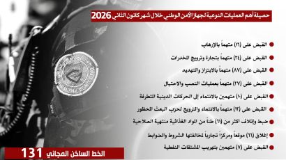 ستة عشر (١٦) متهماً بالإرهاب، و(٣٤) تاجراً ومروّجاً للمخدرات، و(٨٧) متهماً بالابتزاز والتهديد، فضلاً عن عمليات نوعية أخرى نفذها أبطال الجهاز في مختلف محافظات البلاد…