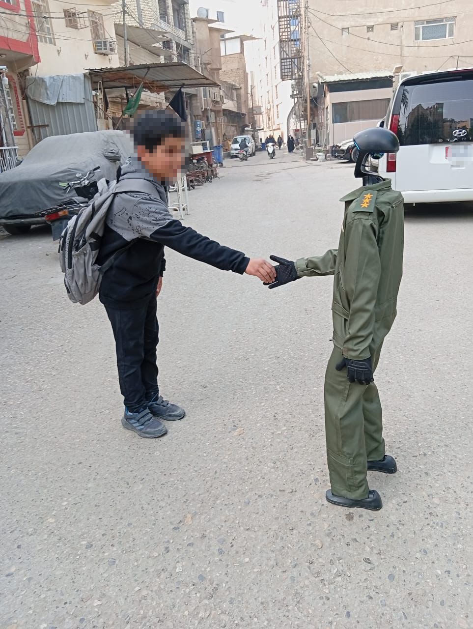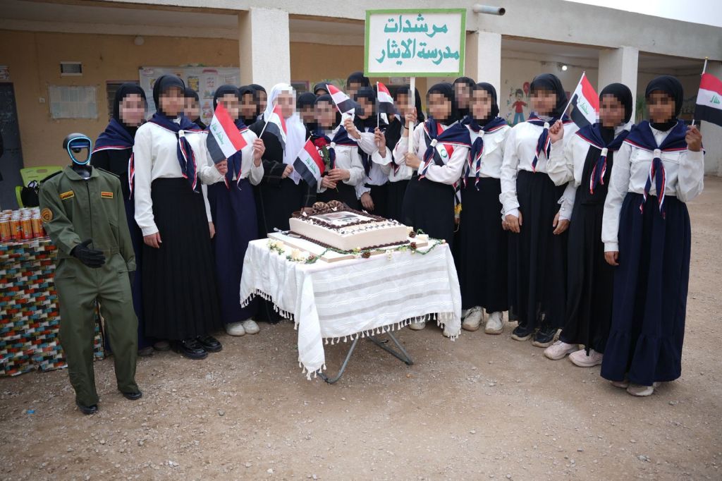 وتوجه الفريق أولاً إلى متوسطة الخلود في منطقة طويريج لتكريم أبناء الشهيد البطل “أيمن عباس مال الله”، وبنفس الوقت توجه فريق آخر إلى مدرسة الإيثار للبنات في منطقة المحمدية لتكريم بنات الشهيد البطل “محسن أسود سليمان”، ثم واصل الفريق واجبه بالتوجه إلى مدرسة سما للبنات في المدينة القديمة لتكريم الابنة الأخرى للشهيد “محسن أسود سليمان”، وأخيراً اجتمع الفريق في جامعة وارث الأنبياء لتكريم طالبة كلية الطب ابنة الشهيد البطل “سلمان داوود كاظم”، وذلك برفقة الروبوت “نقيب حسن” وباص حملة “احنا بظهركم”.